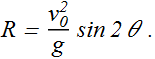 of the projectile is the horizontal distance the projectile has traveled when it returns to its initial (launch) height or when