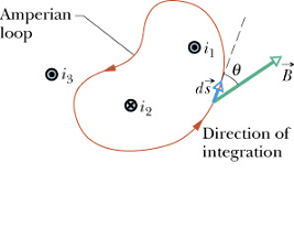 The loop on the integral sign means that the scalar (dot) product is to be integrated around a closed loop, called an Amperian loop.