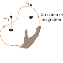 All the currents inside the loop parallel to the thumb are counted as positive.
