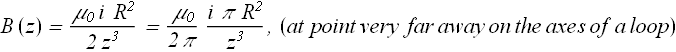 When observation point is very far from the current loop or R≪z, then the magnetic field at that point is given as